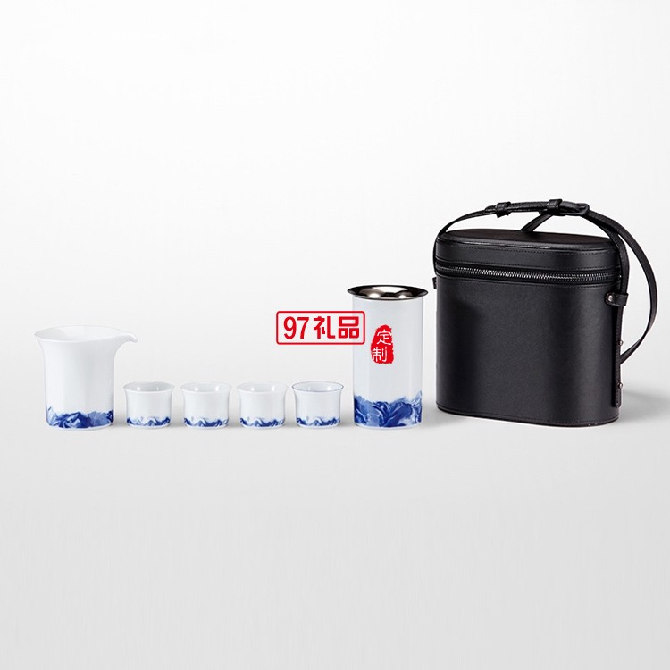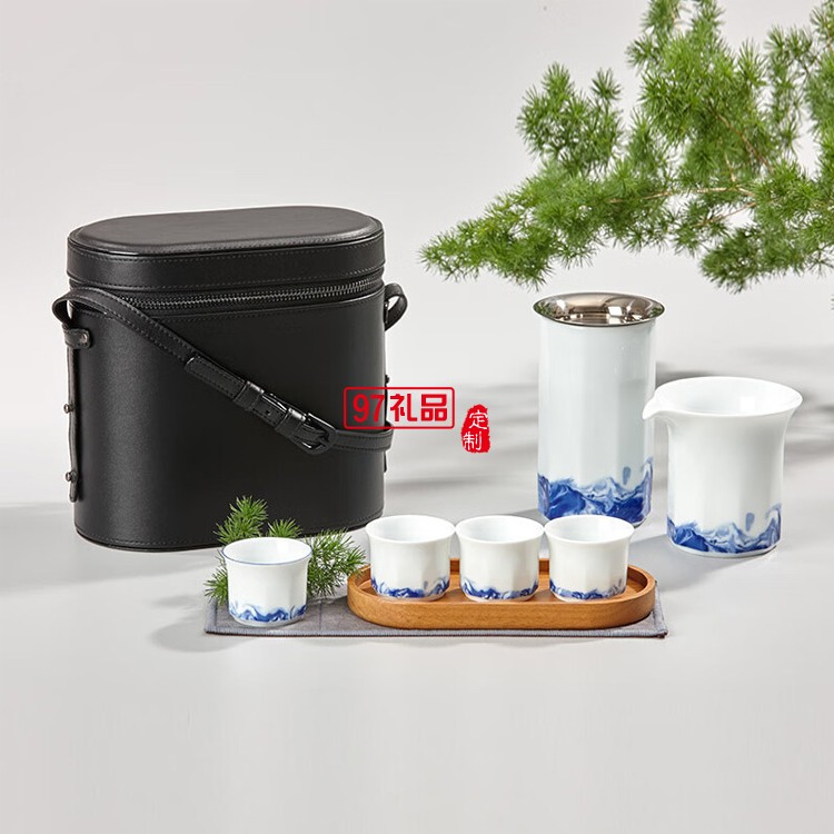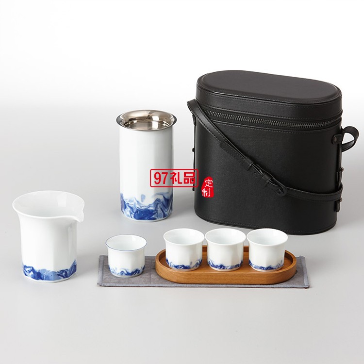 哲品「山海行」旅行茶具套裝便攜戶(hù)外一壺四杯陶瓷茶具帶茶具包