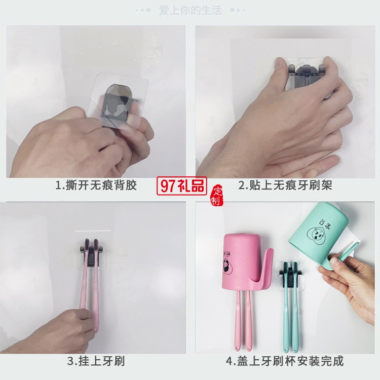 牙刷杯架簡(jiǎn)易漱口杯簡(jiǎn)約無(wú)痕小架子創(chuàng)意壁掛式架子免打孔刷牙杯子
