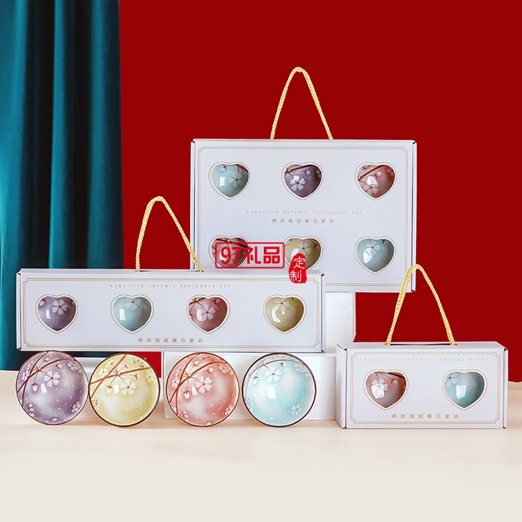 冰裂紋禮品碗套裝日式陶瓷碗餐具活動開業(yè)小禮物