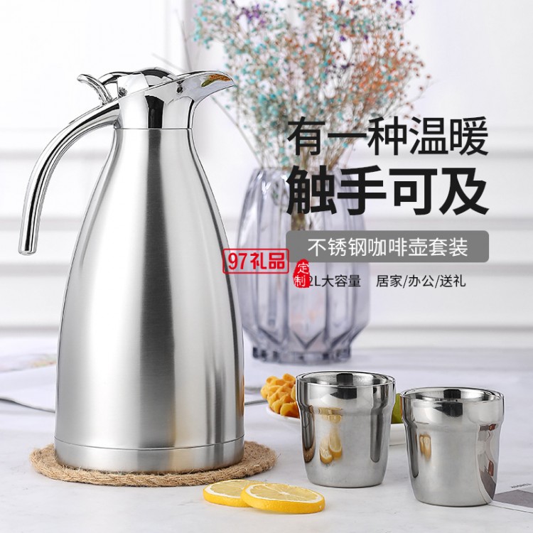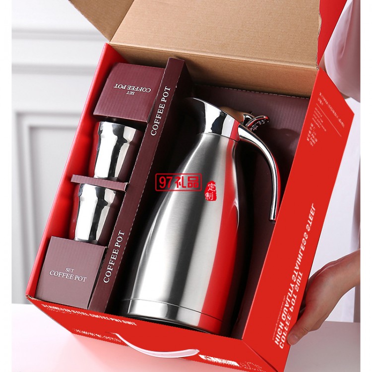不銹鋼壺保溫壺三件套 歐式真空咖啡壺水壺婚慶喜慶實用禮盒套裝