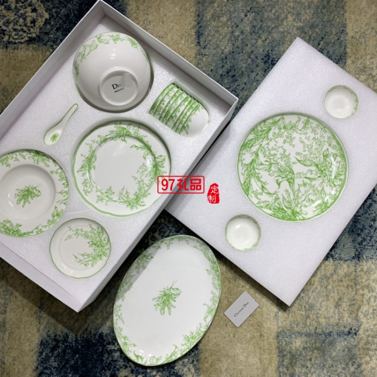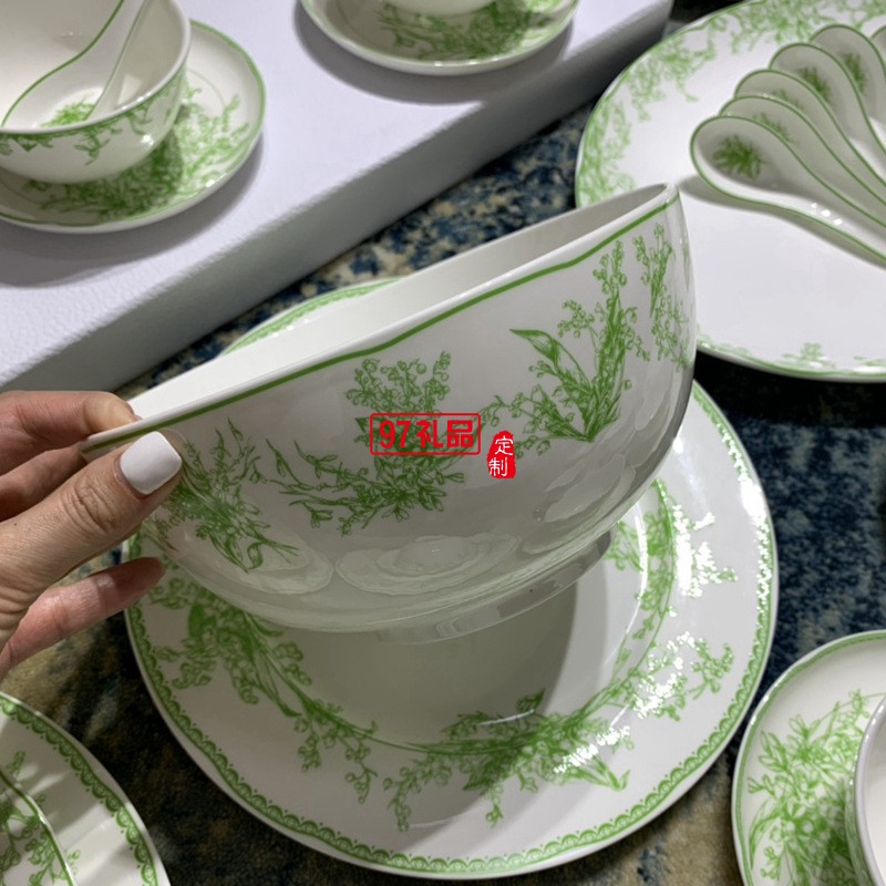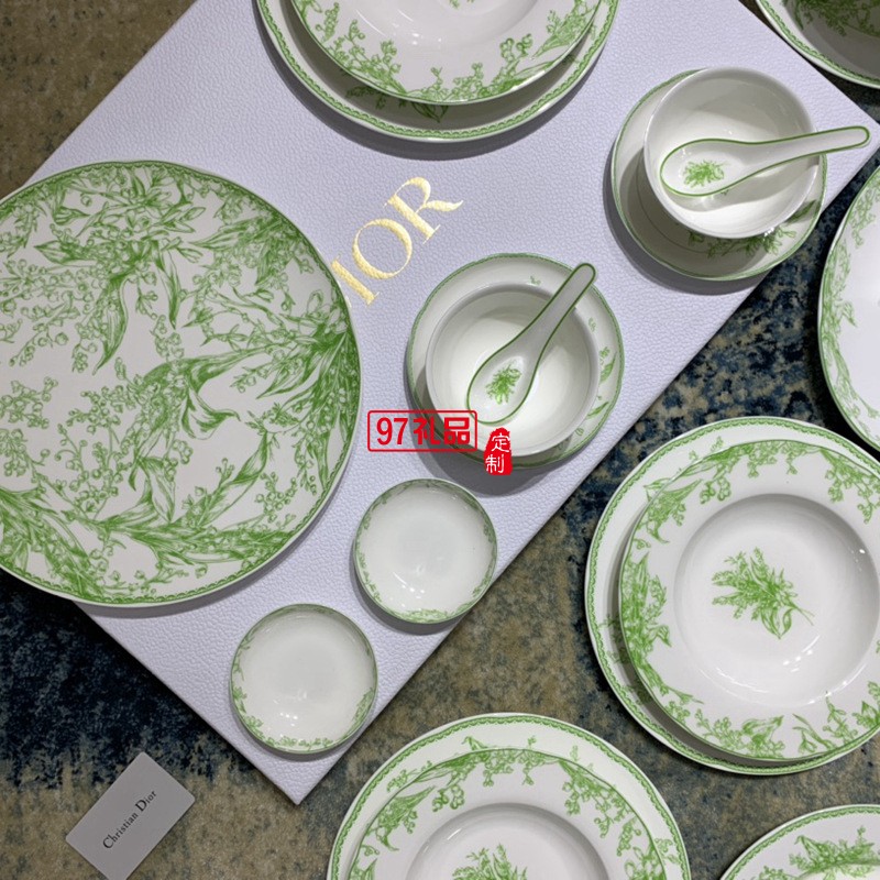 Do鈴蘭系列41頭餐具套裝禮盒DIO MAISON高級骨瓷綠色喬遷結(jié)婚