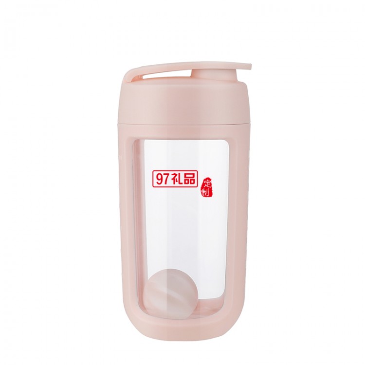尊享 運動搖搖杯-櫻粉杯內(nèi)有硅膠球蛋白粉奶昔麥片酸奶果醬等快速搖勻