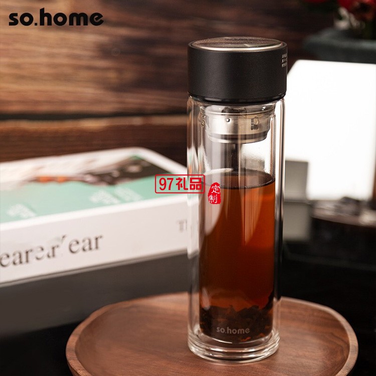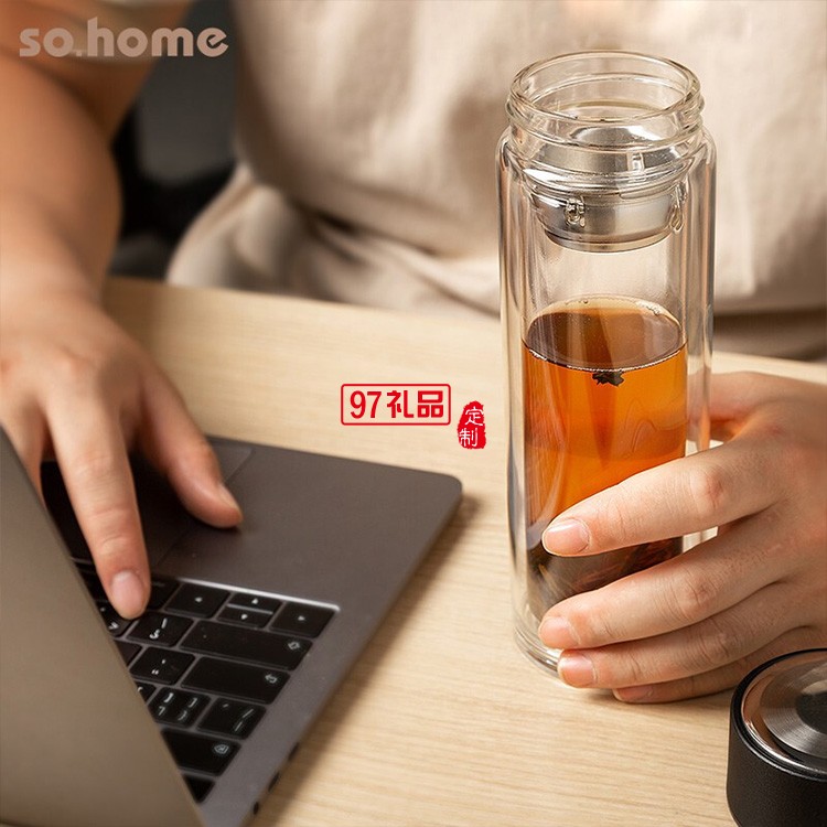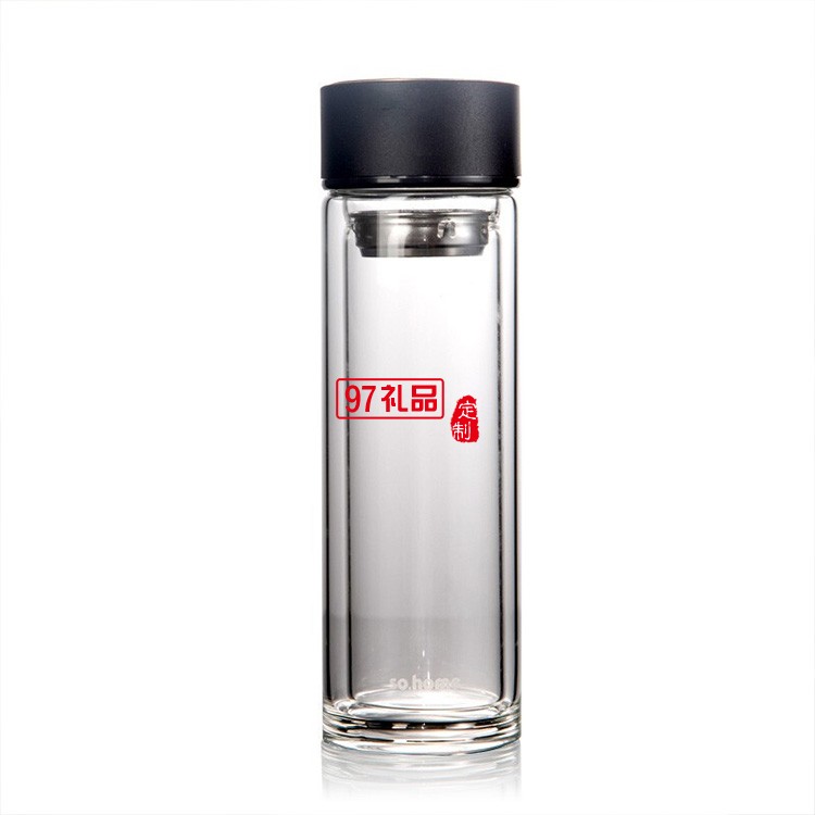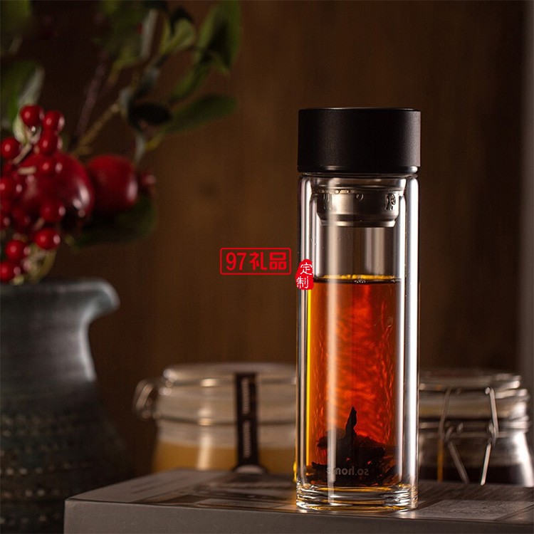 雙層玻璃杯便攜帶蓋帶茶濾杯子男士商務(wù)車載水杯辦公杯禮品杯子定制