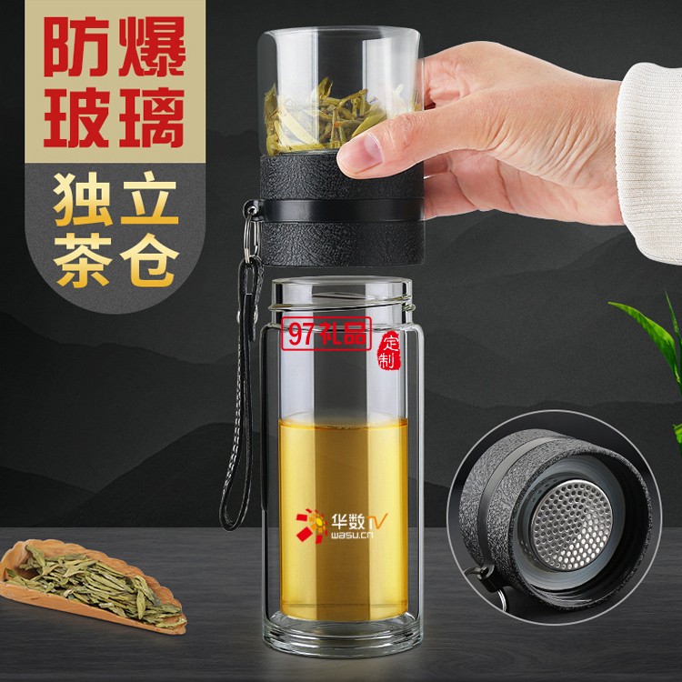 茶水分離杯雙層玻璃杯