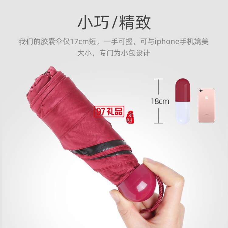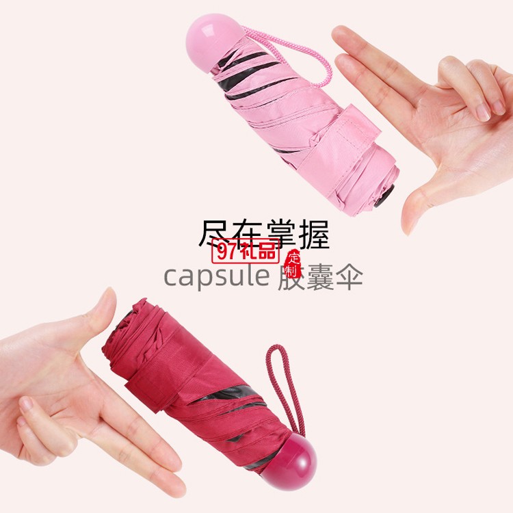 迷你膠囊雨傘五折黑膠傘男女折疊太陽傘遮陽口袋傘廣告?zhèn)愣ㄖ芁OGO
