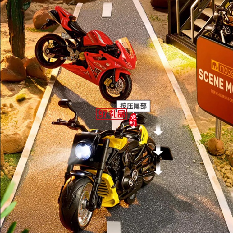 mobee摩托車玩具男孩仿真合金機(jī)車模型賽車兒童回力玩具車手辦