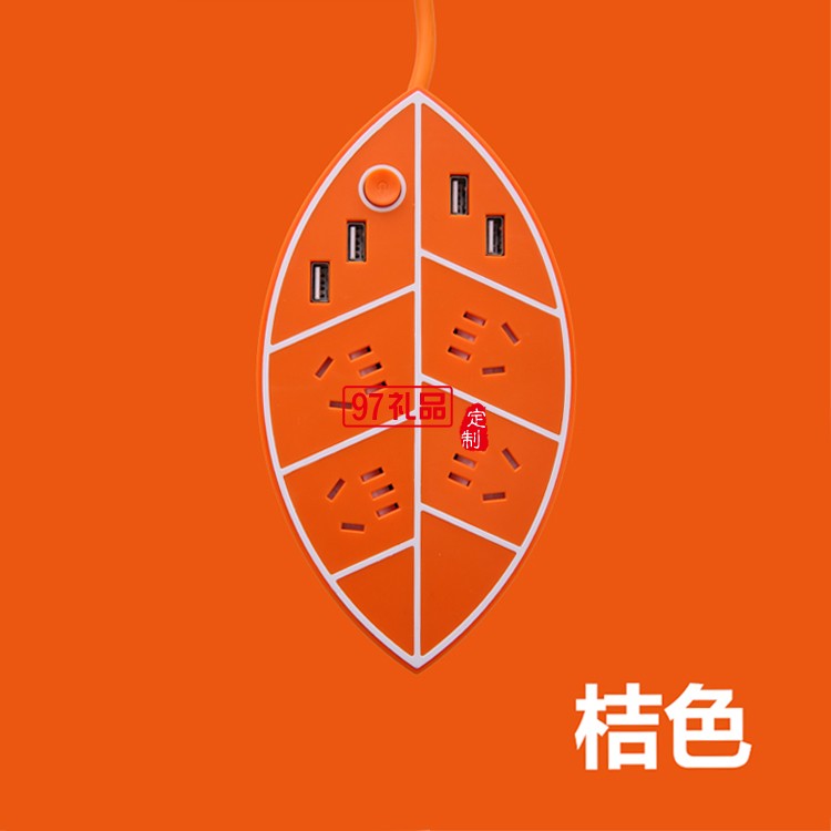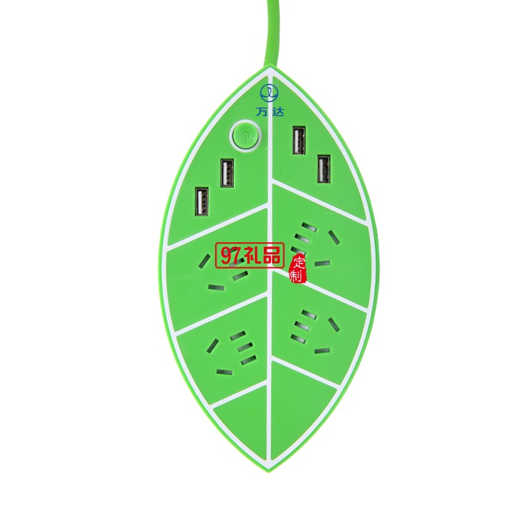 萬達定制創(chuàng)意USB智能插排樹葉拖線插座定制公司廣告禮品