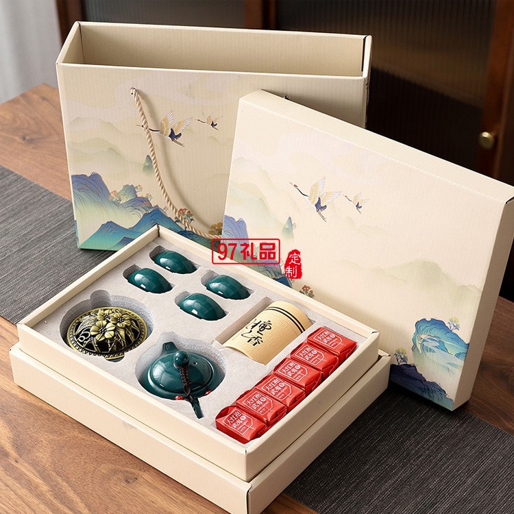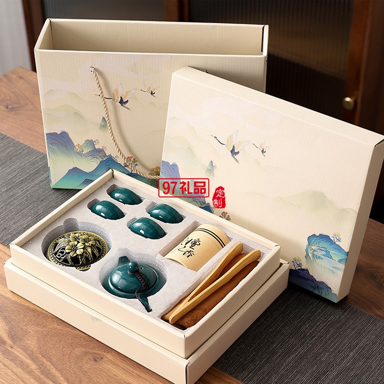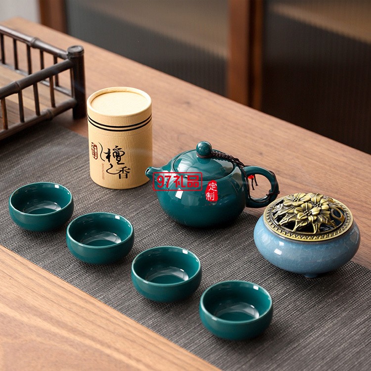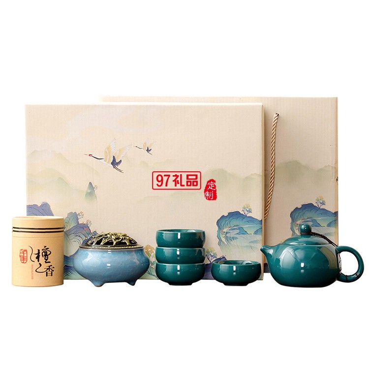 國潮中國風商務禮品茶具青瓷西施壺1壺4杯香爐檀香組合套裝