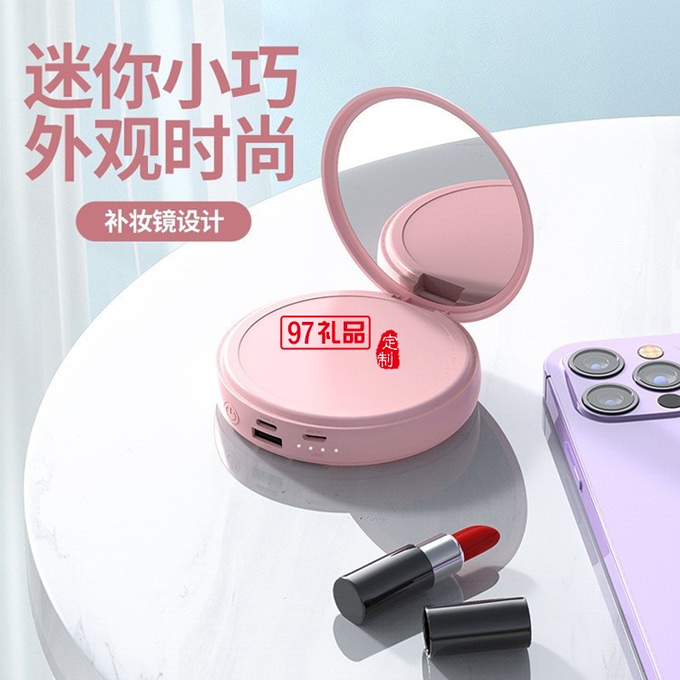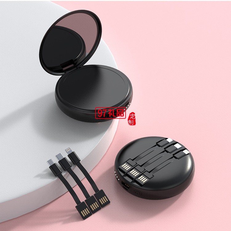 創(chuàng)意圓形自帶線充電寶迷你美妝鏡20000毫安