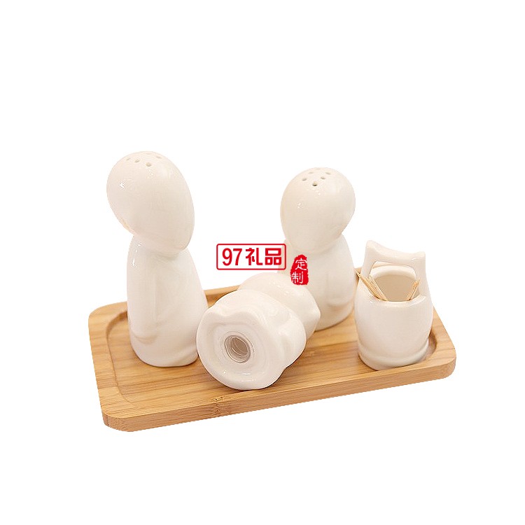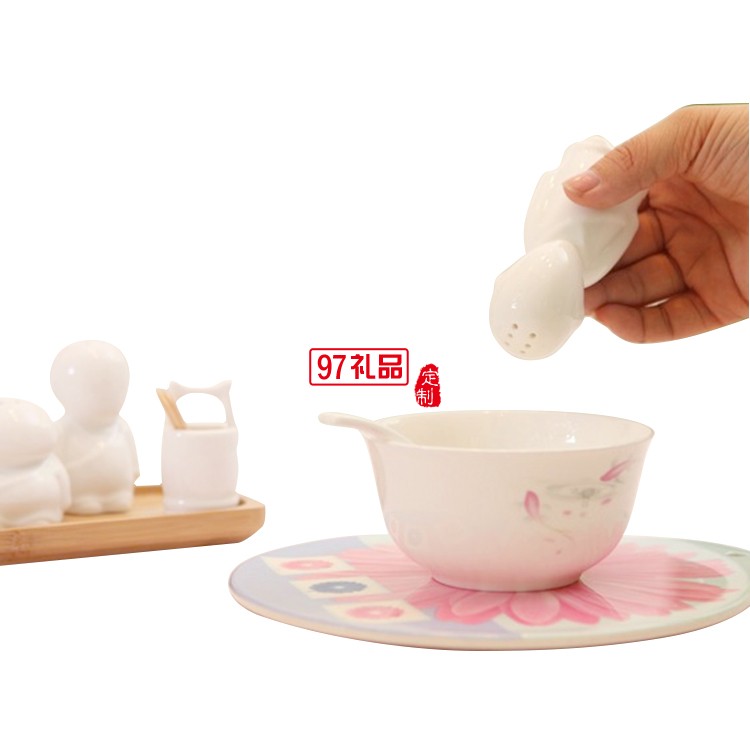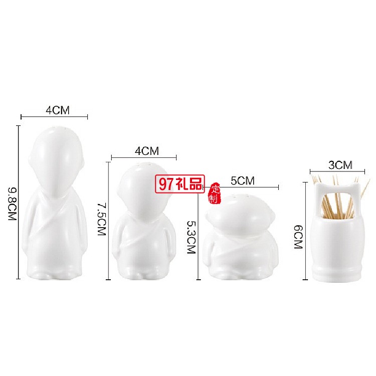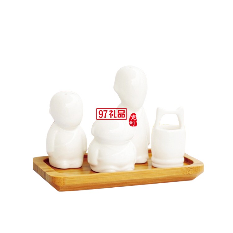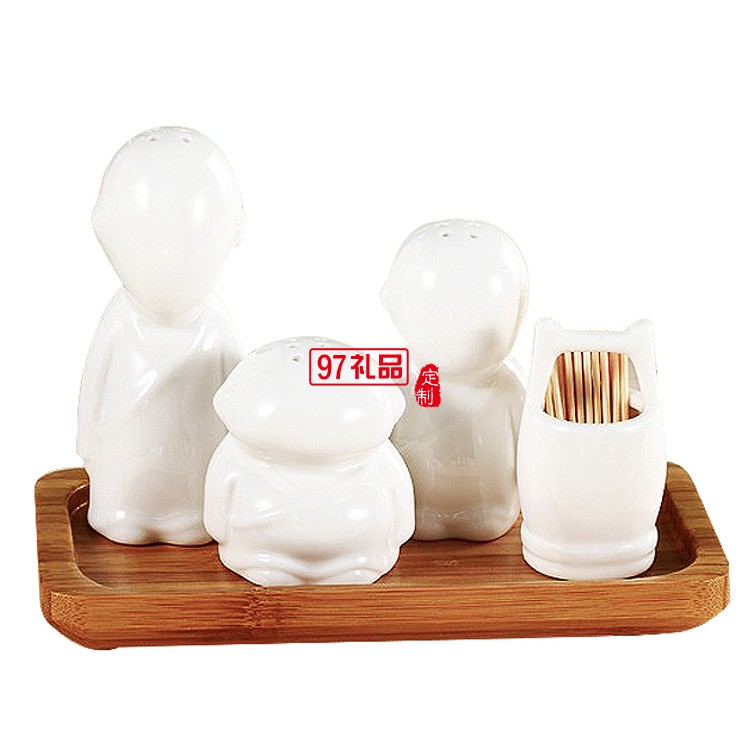 創(chuàng)意調(diào)味瓶 三個和尚陶瓷調(diào)味罐定制公司廣告禮品