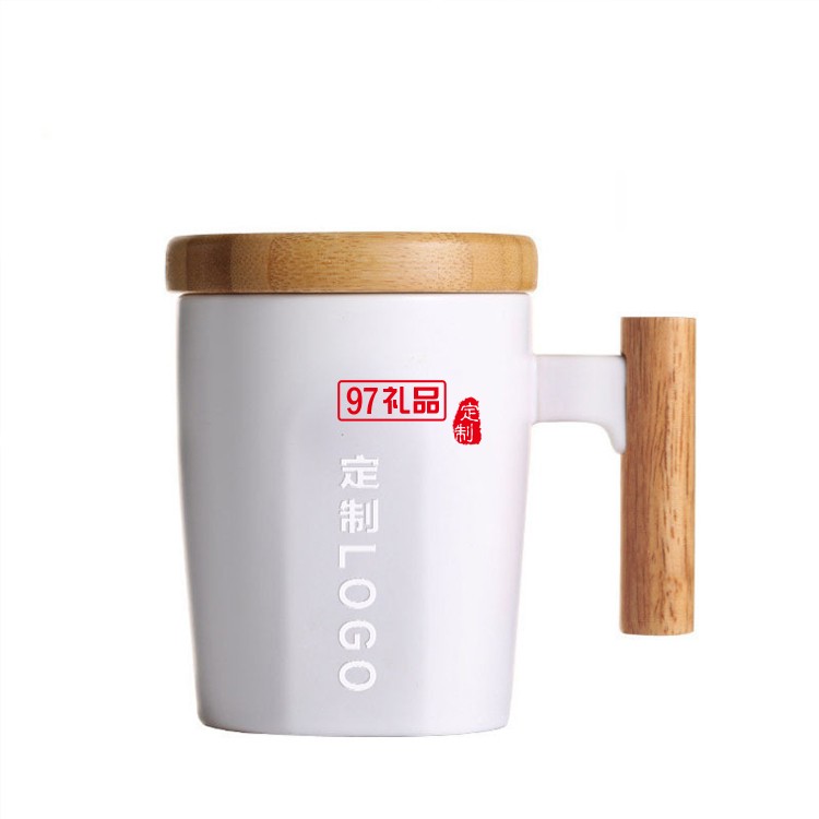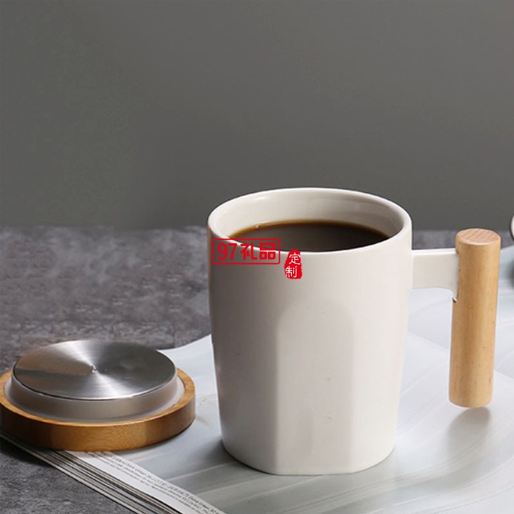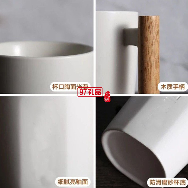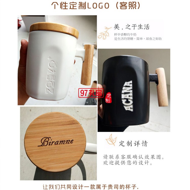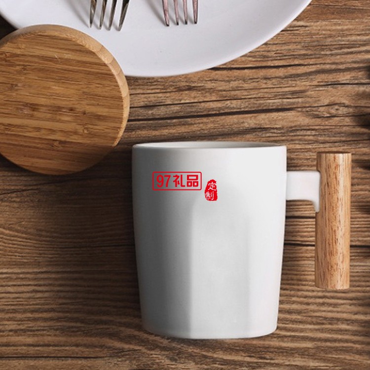 創(chuàng)意杯子陶瓷馬克杯木柄咖啡杯辦公室水杯帶蓋黑白情侶杯商務(wù)禮品