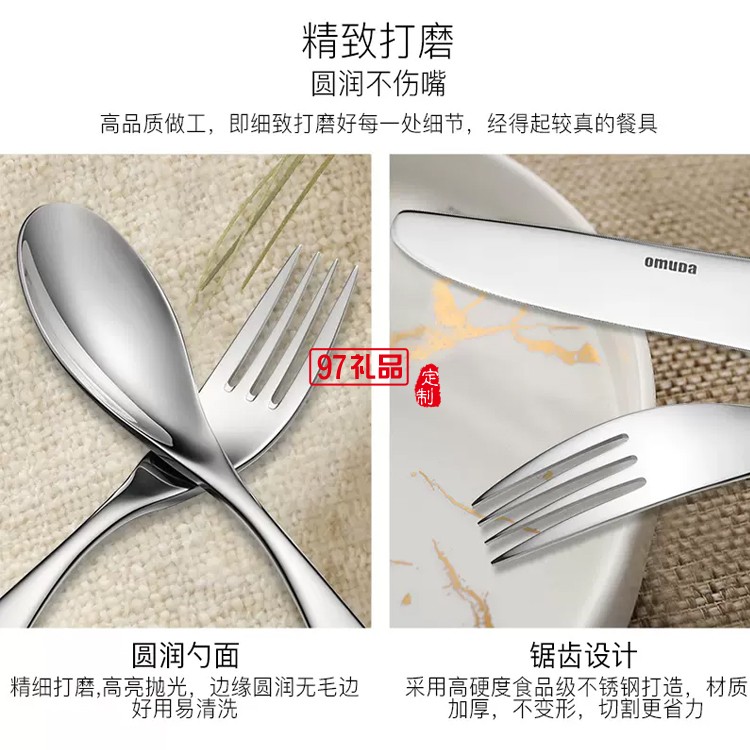 歐美達(dá)牛排刀叉勺套裝高檔全套餐具西餐四件套定制公司廣告禮品