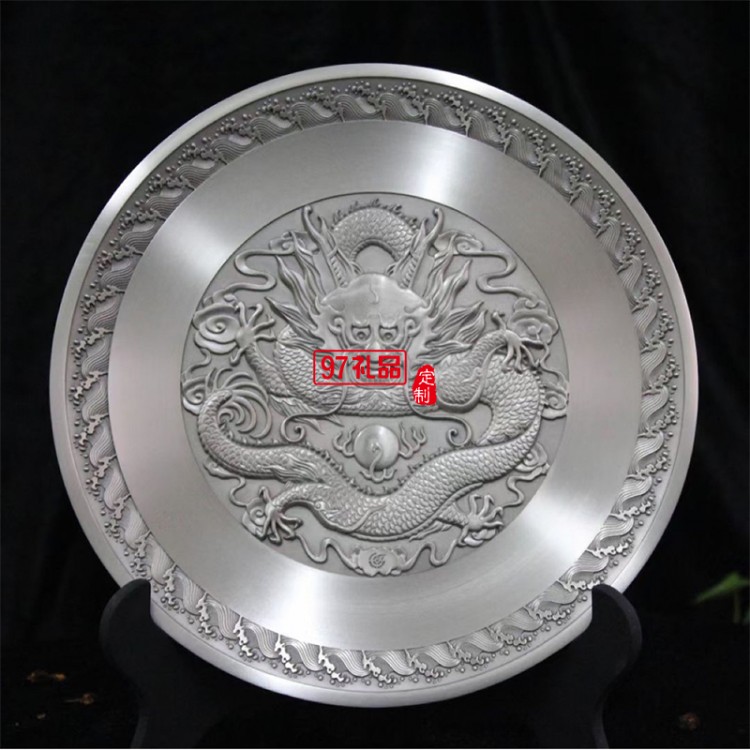龍騰盛世純錫龍盤金屬龍紋盤純錫紀(jì)念盤 金屬獎盤銀盤金盤刻字