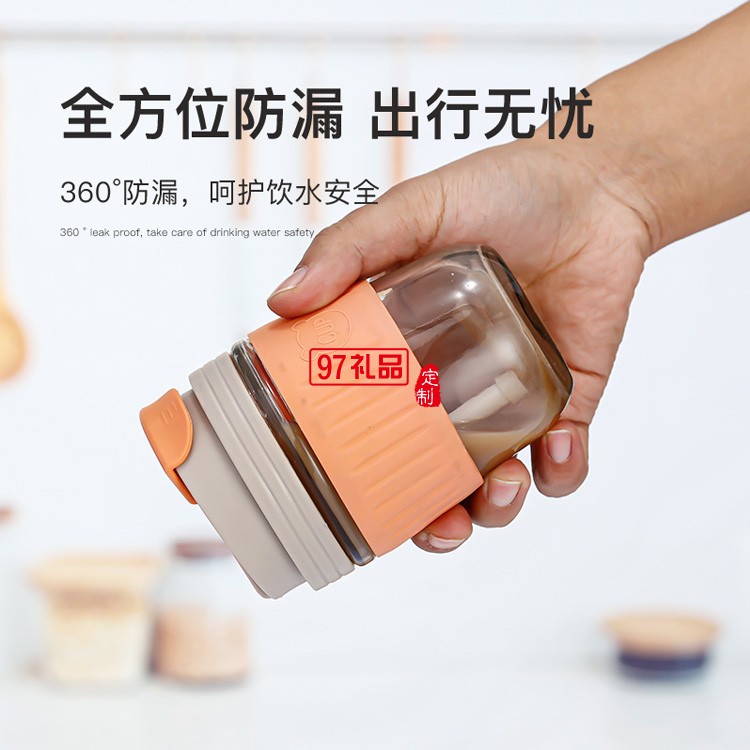 咖啡杯杯子玻璃杯帶蓋吸管杯隨行杯活動小禮品定制