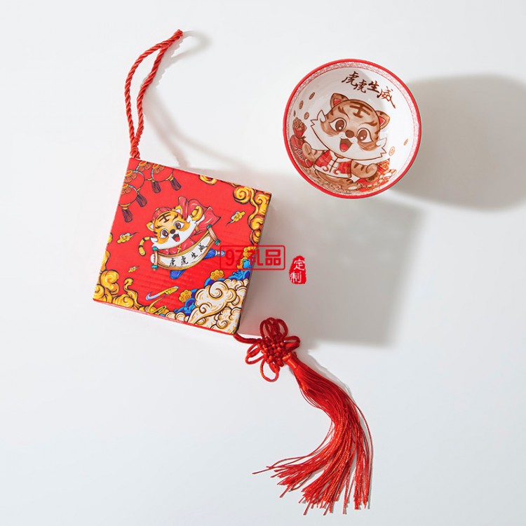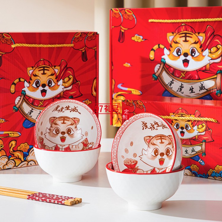 國潮虎虎生威陶瓷碗筷套裝禮盒裝新款虎年餐具禮品碗年會(huì)公司活動(dòng)