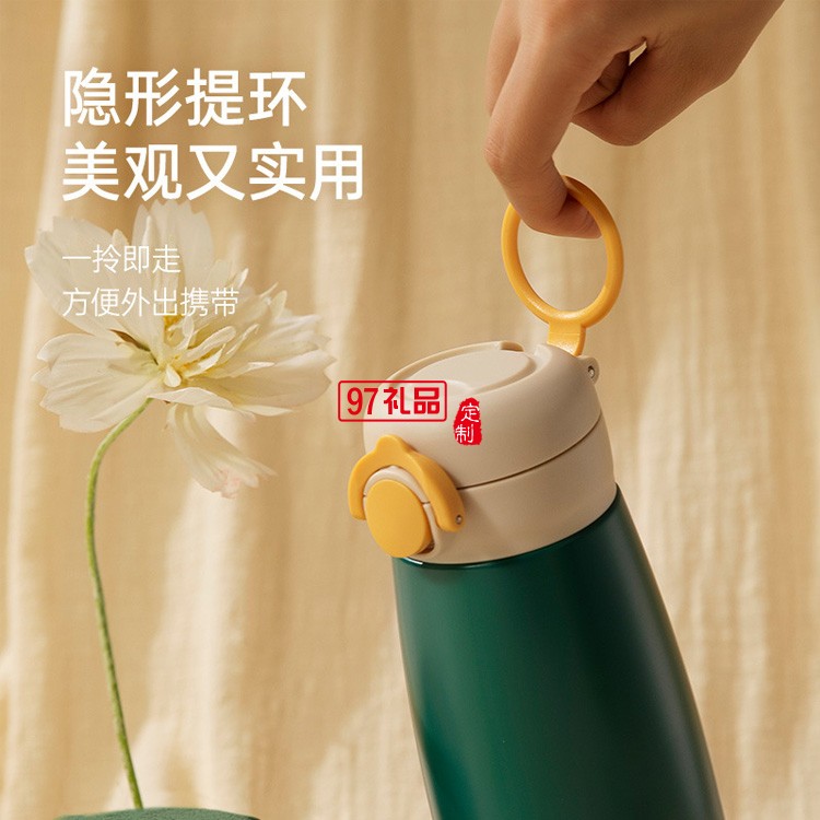 保溫杯304不銹鋼帶提手女生便攜水杯子禮品杯子定制