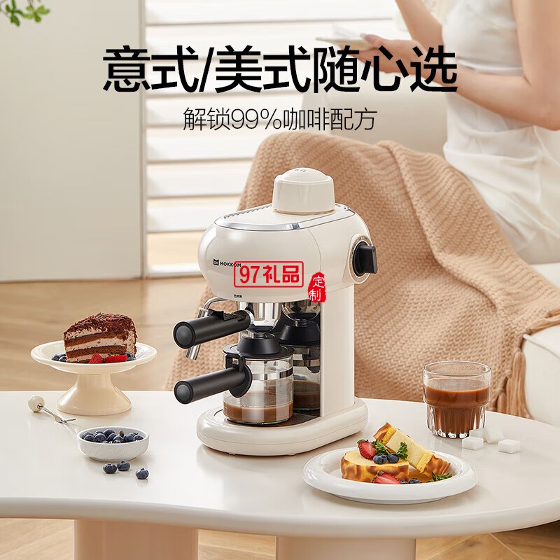 家用多功能小型意式半自動(dòng)咖啡機(jī) 米白色 MK-382 企業(yè)專(zhuān)屬定制