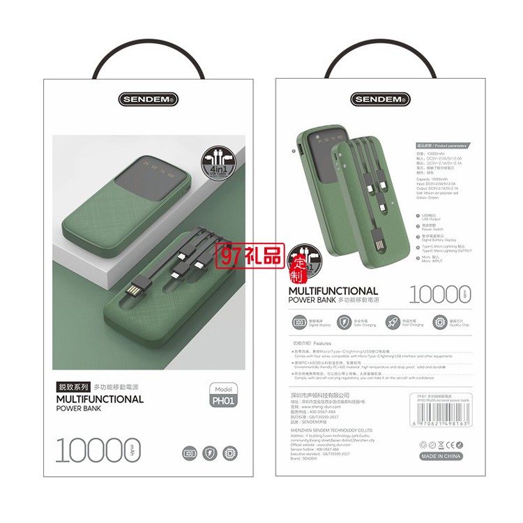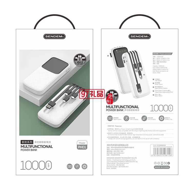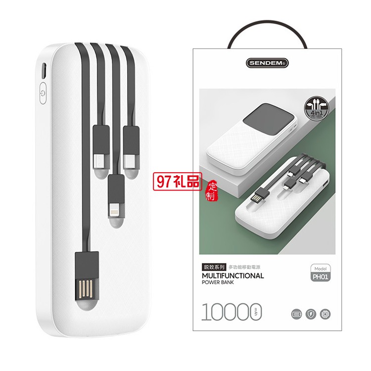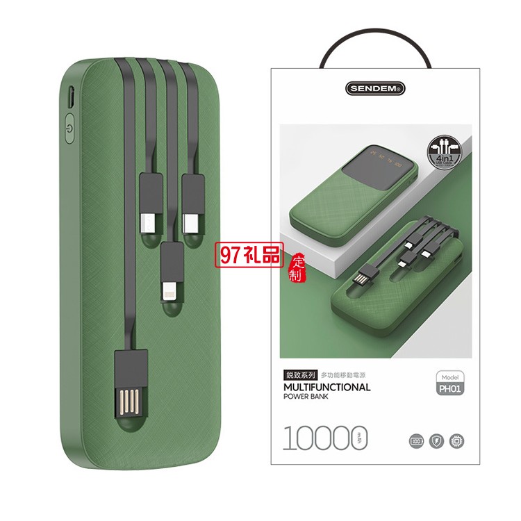 便攜快充四合一移動(dòng)電源 自帶線10000毫安