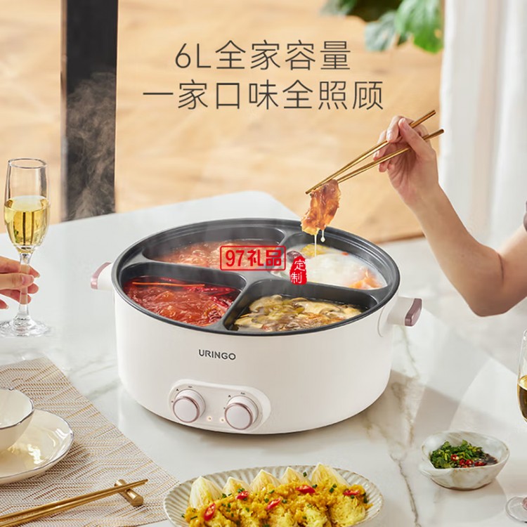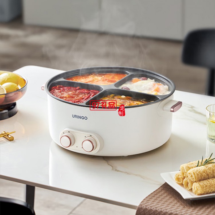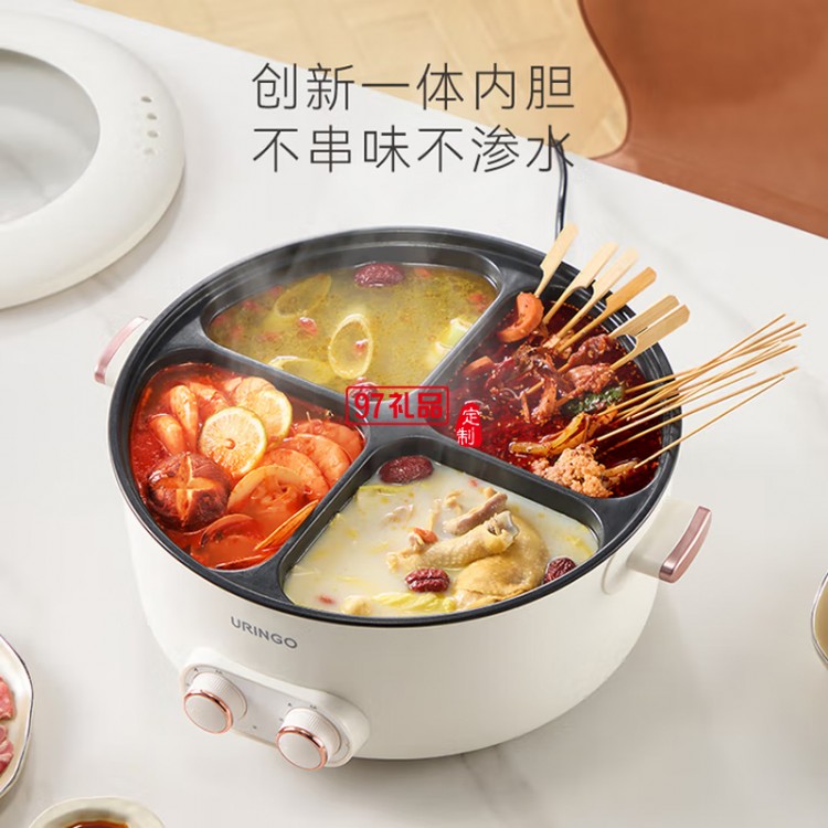 七彩叮當(dāng)鴛鴦鍋四宮格大容量速沸多用途鍋電煮鍋多功能鍋分體家用電熱鍋火鍋