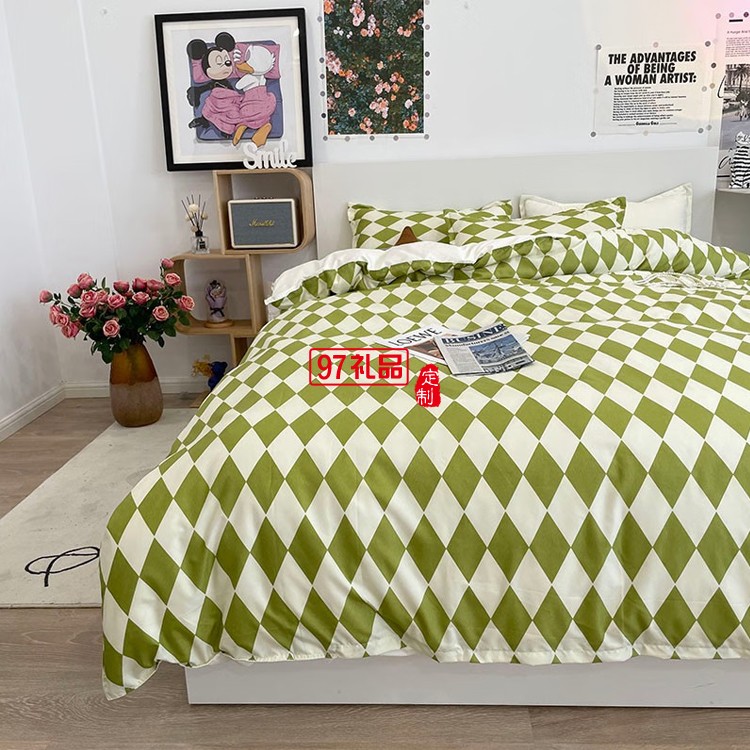 啄木鳥 卡膚棉四件套-抹茶菱格ZMN-KFM003定制公司廣告禮品