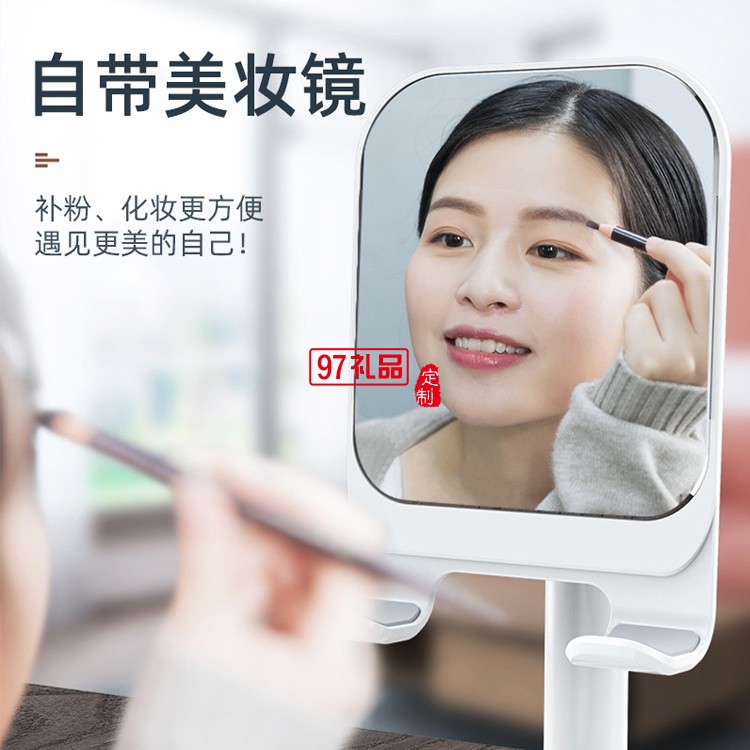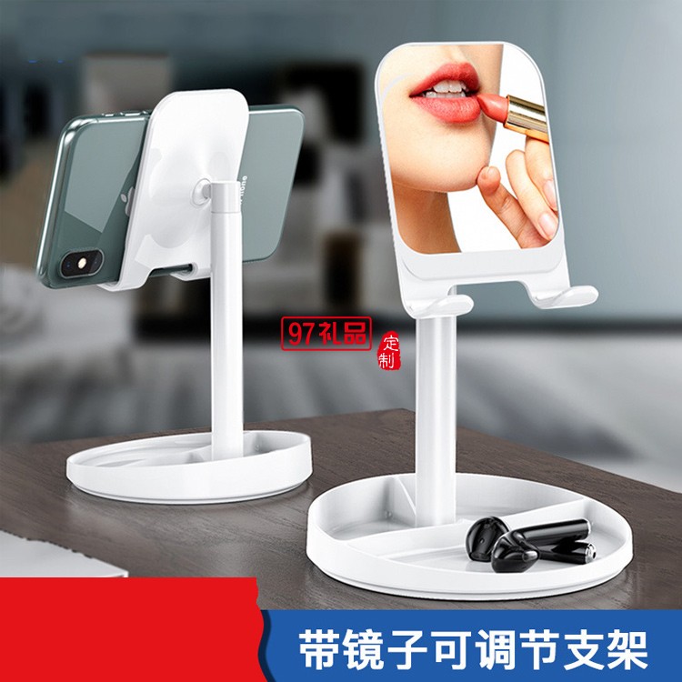 帶鏡子圓盤收納可升降調(diào)節(jié)桌面懶人伸縮通用平板手機支架