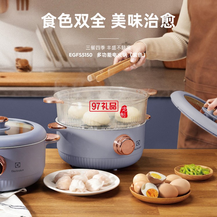 上蒸下煮大容量食品用不粘涂層多功能電火鍋(米色)