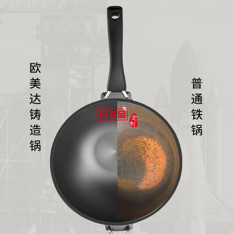 歐美達鑄造炒鍋無涂層物理不粘炒菜鍋OC7833-B定制公司廣告禮品