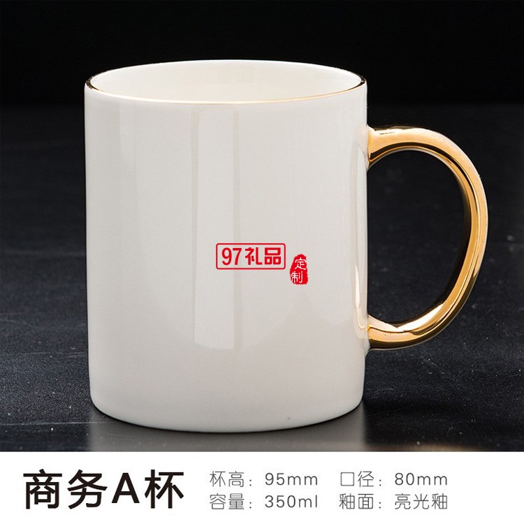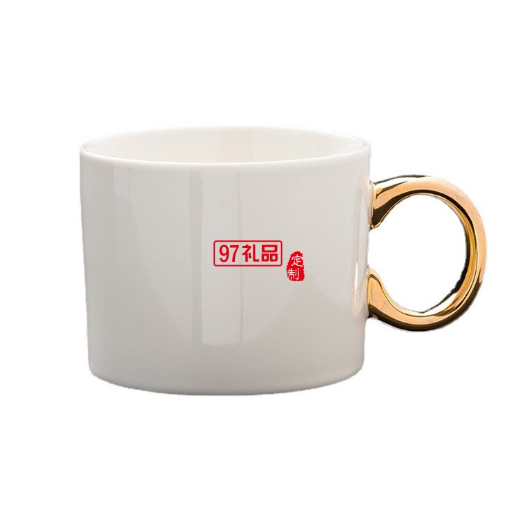 真金柄陶瓷杯杯子鍍金手柄描金邊金口馬克杯禮品杯子定制