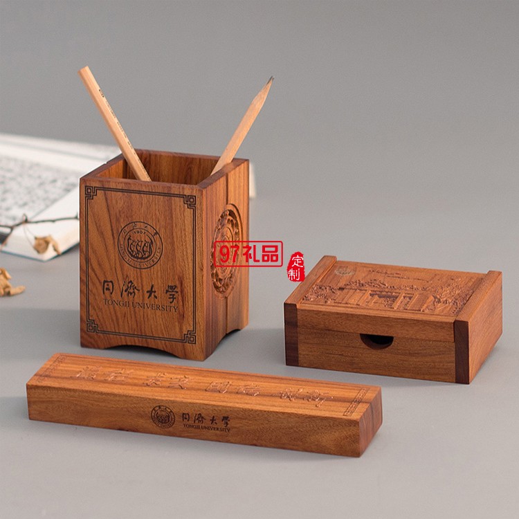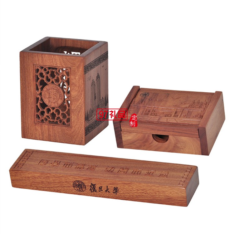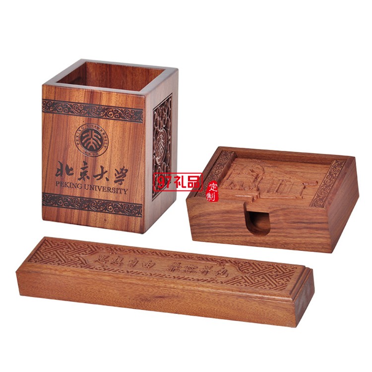 大學定制文具套裝非洲酸枝木筆筒三件套