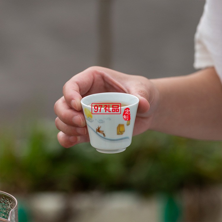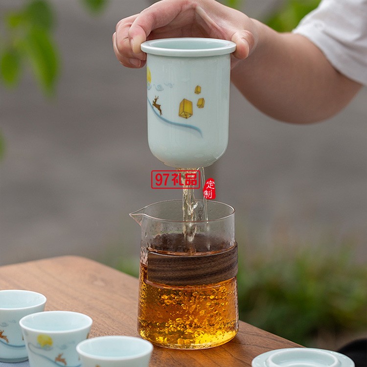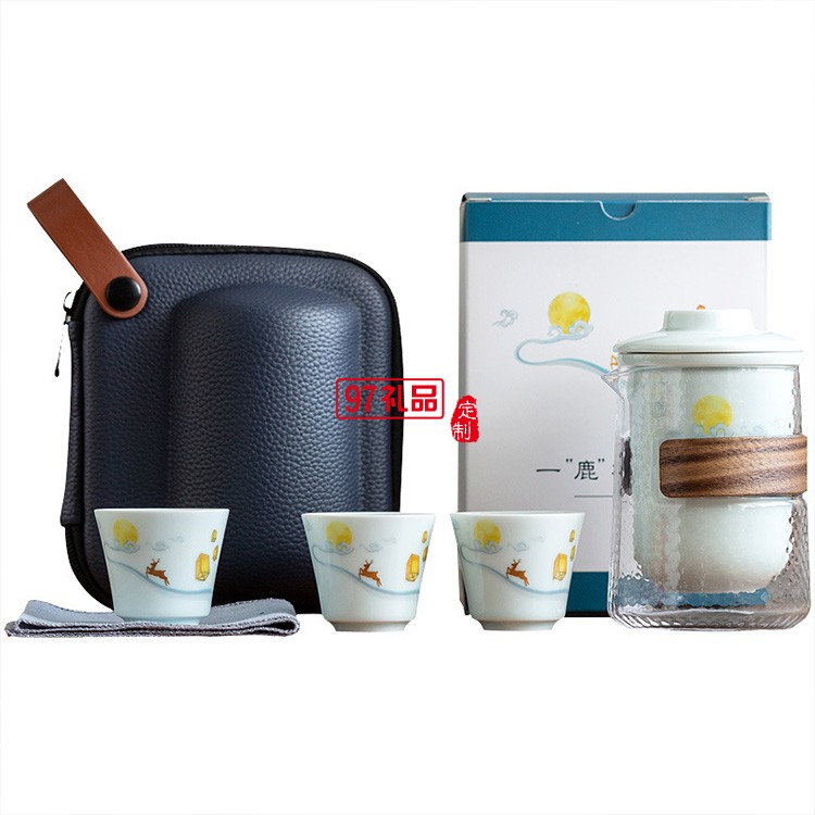 一鹿相伴快客杯青瓷茶具套裝便攜式旅行包簡(jiǎn)約泡茶器logo定制