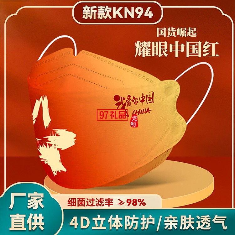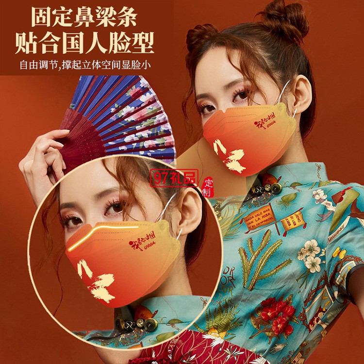 我愛(ài)你中國(guó)國(guó)潮KF94口罩成人一次性魚(yú)嘴型中國(guó)風(fēng)kf94口罩獨(dú)立包裝