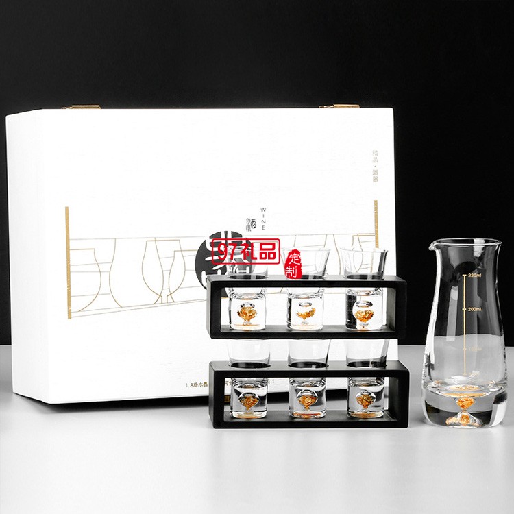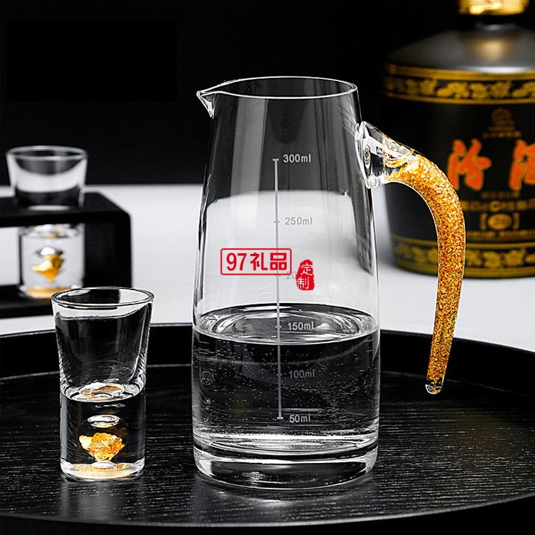 分酒器 水晶玻璃茅臺小酒杯 創(chuàng)意金箔烈酒杯酒壺酒具禮盒套裝