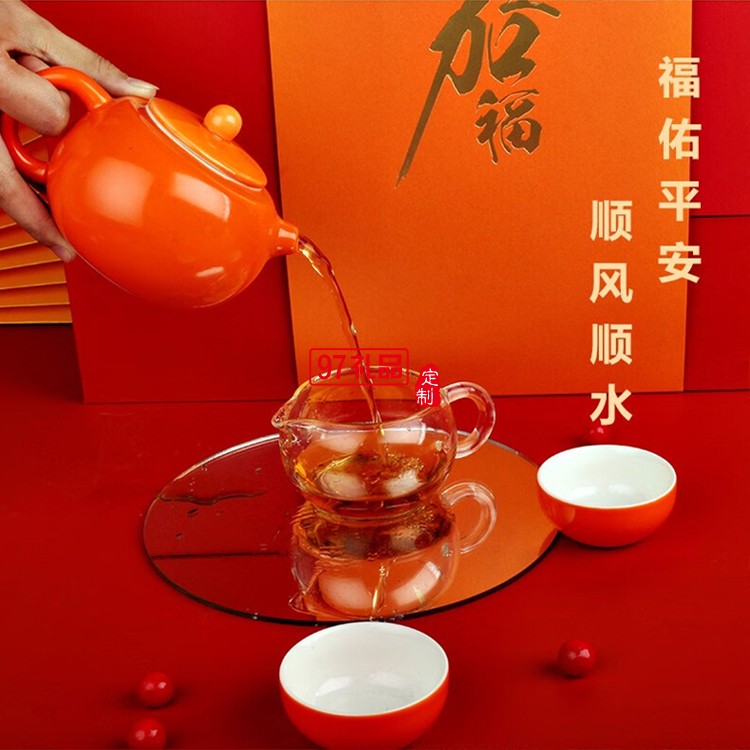• 商品名稱:東客集國風新年禮盒茶具套裝福上加福商務送禮伴手禮新年回饋客戶禮兩壺四杯陶瓷禮品 紅色
