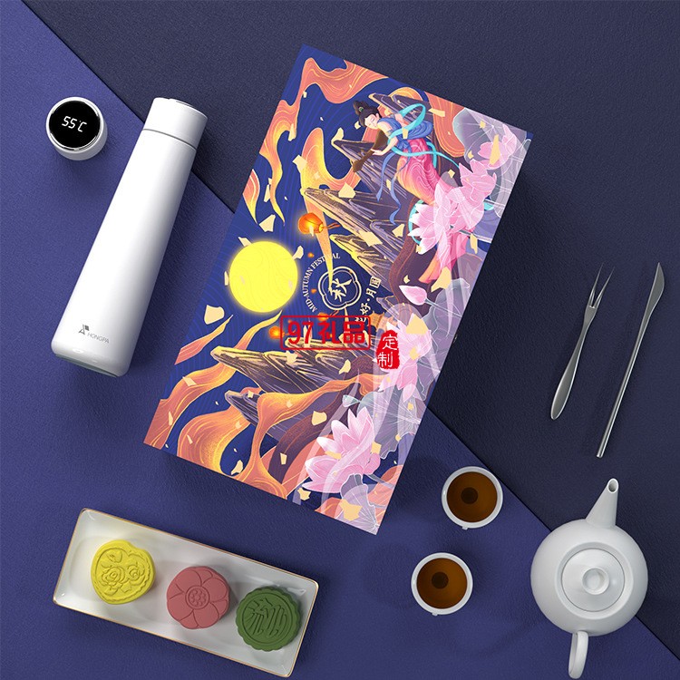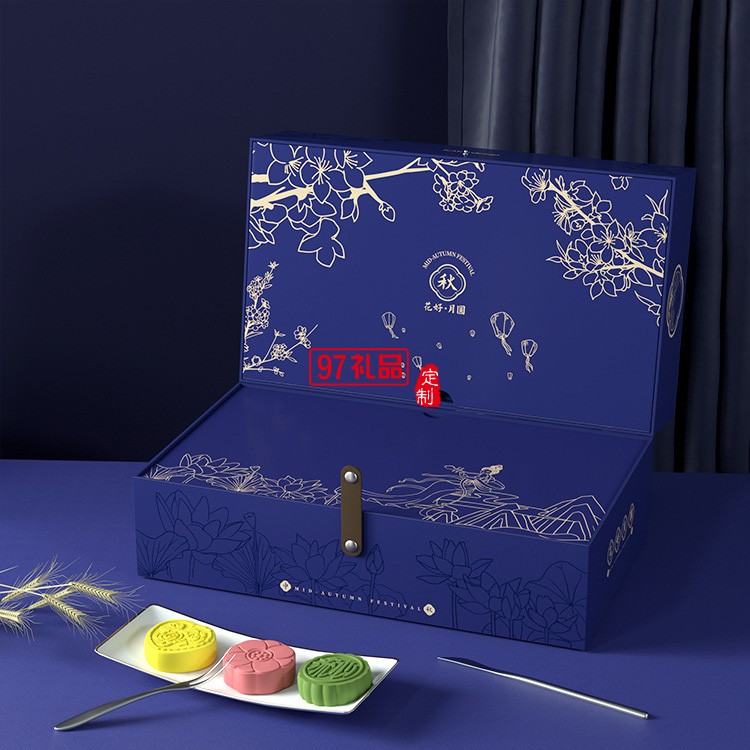 創(chuàng)意中秋禮品月餅中國風天地蓋雙層翻蓋高檔中秋禮盒Logo批發(fā)