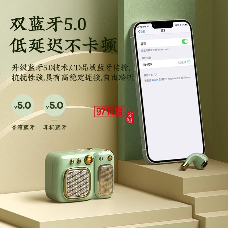 REMAX/睿量 復(fù)古藍牙音箱5.0帶耳機可充電插卡帶收音機小音響