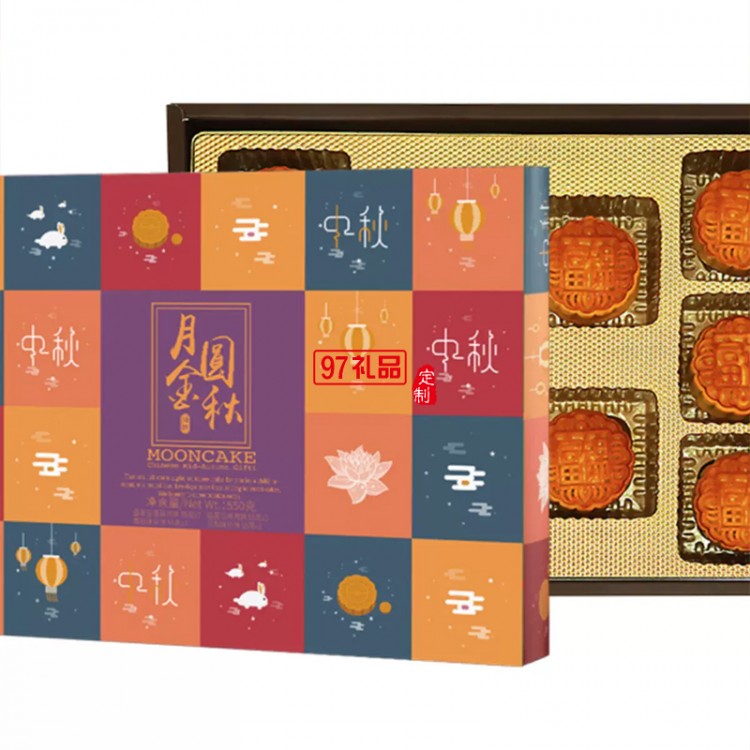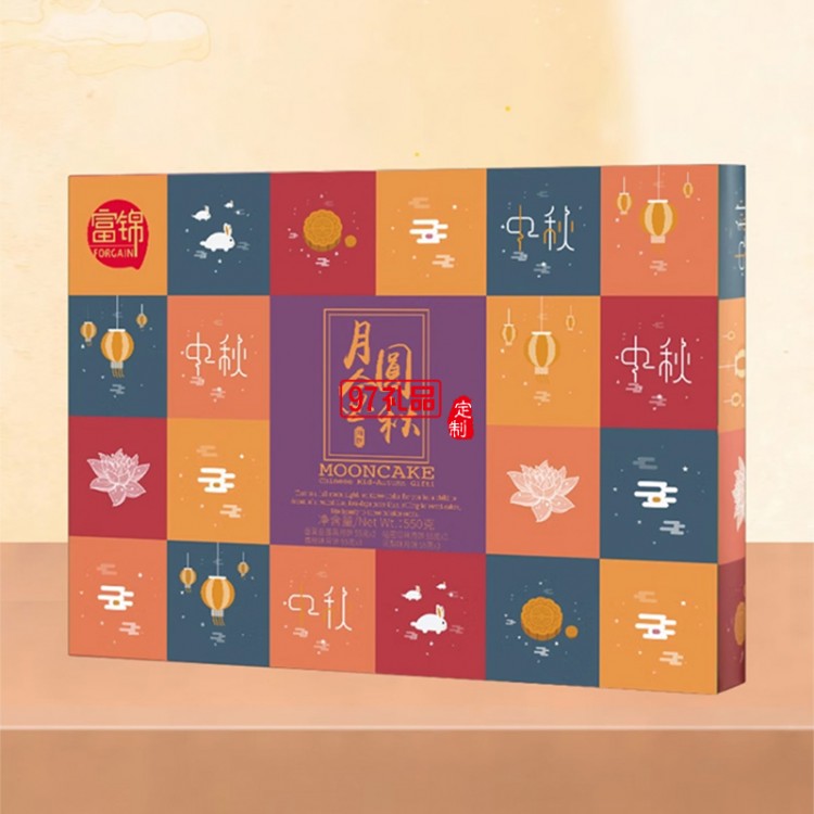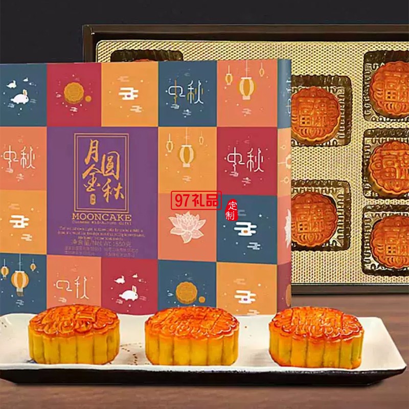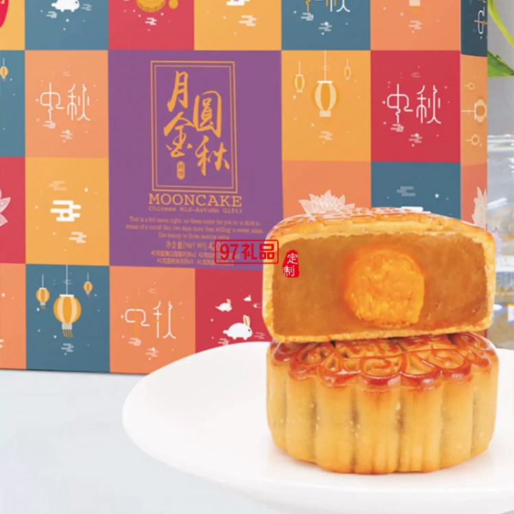 富錦月圓金秋廣東廣式脆皮蛋黃蓮蓉哈密瓜荔枝鳳梨水果味月餅禮盒