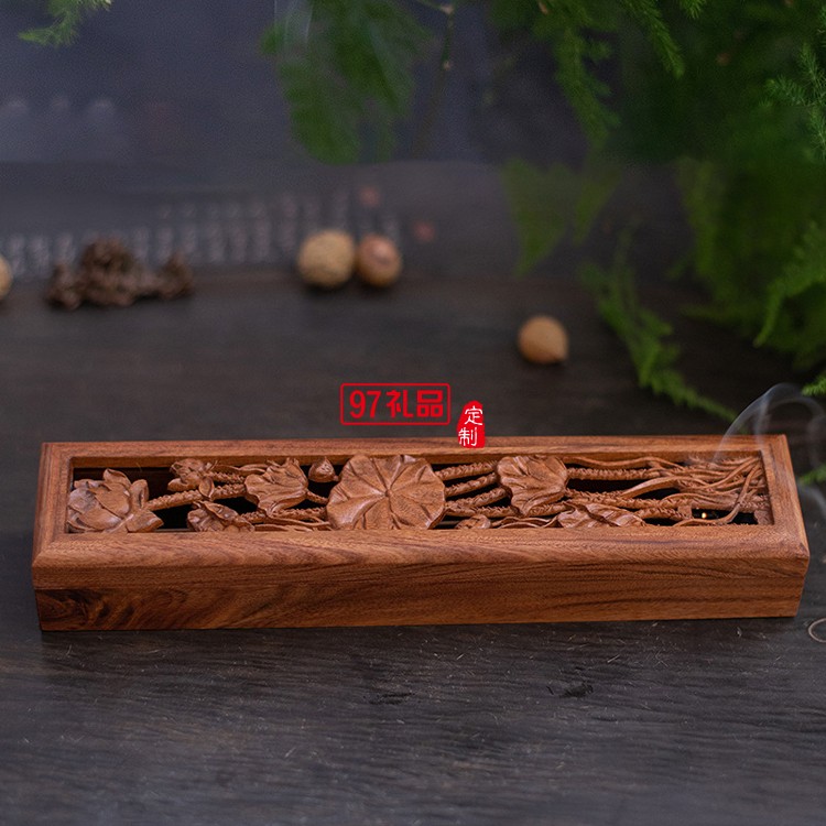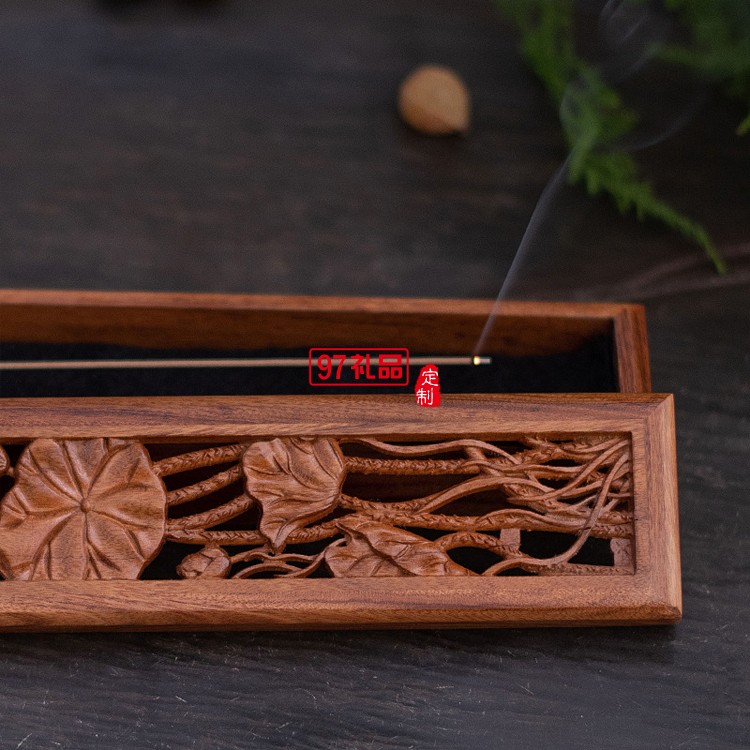 非洲酸枝木精雕鏤空浮雕荷韻香盒