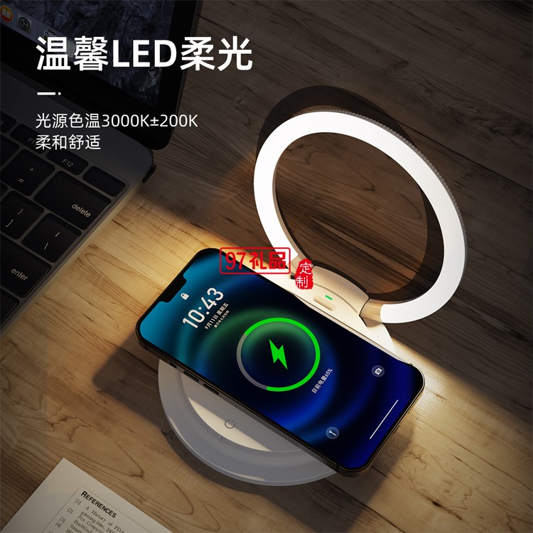 工廠店15W無線充3擋位創(chuàng)意LED小夜燈便攜式手機支架折疊式床頭燈