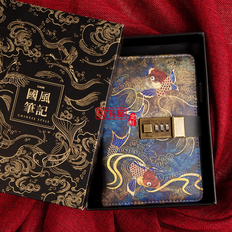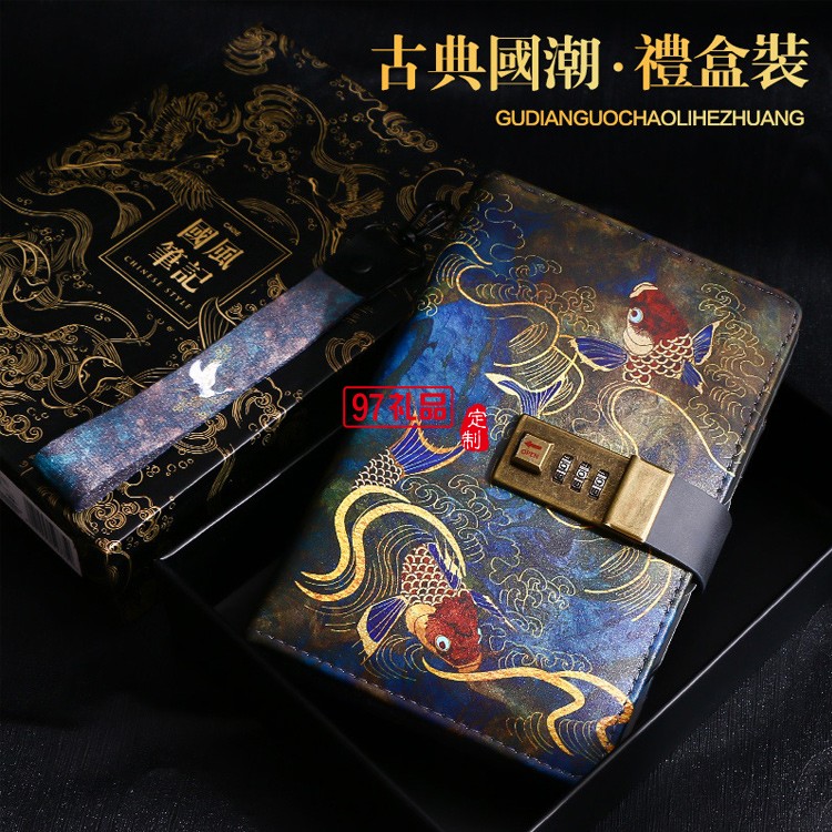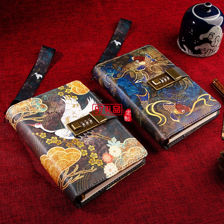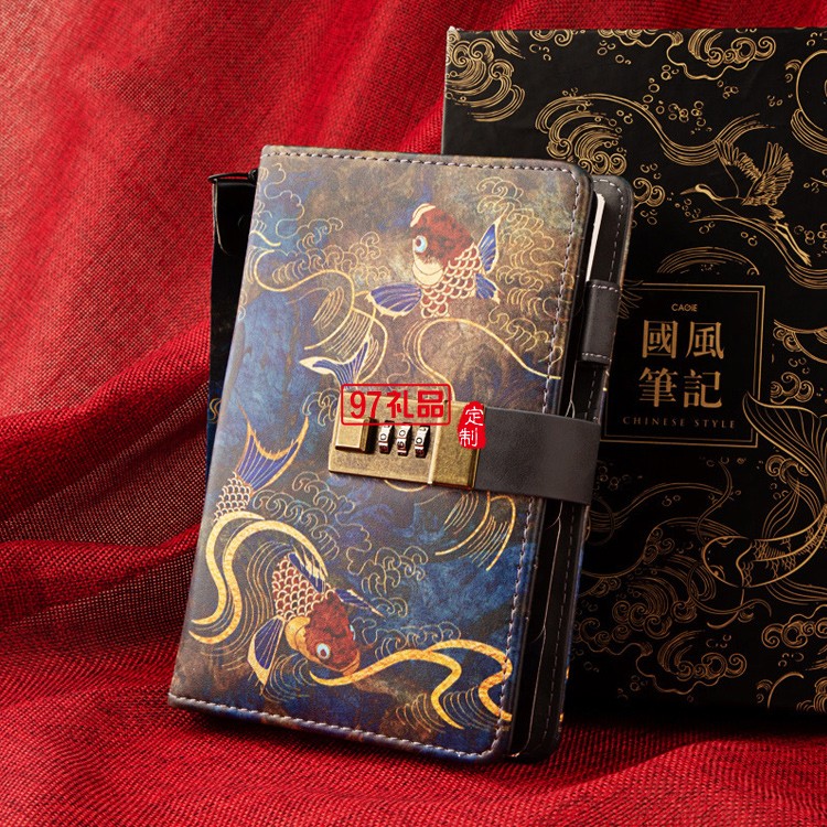 國潮活頁手帳本禮盒裝 密碼帶鎖筆記本學生日記本子