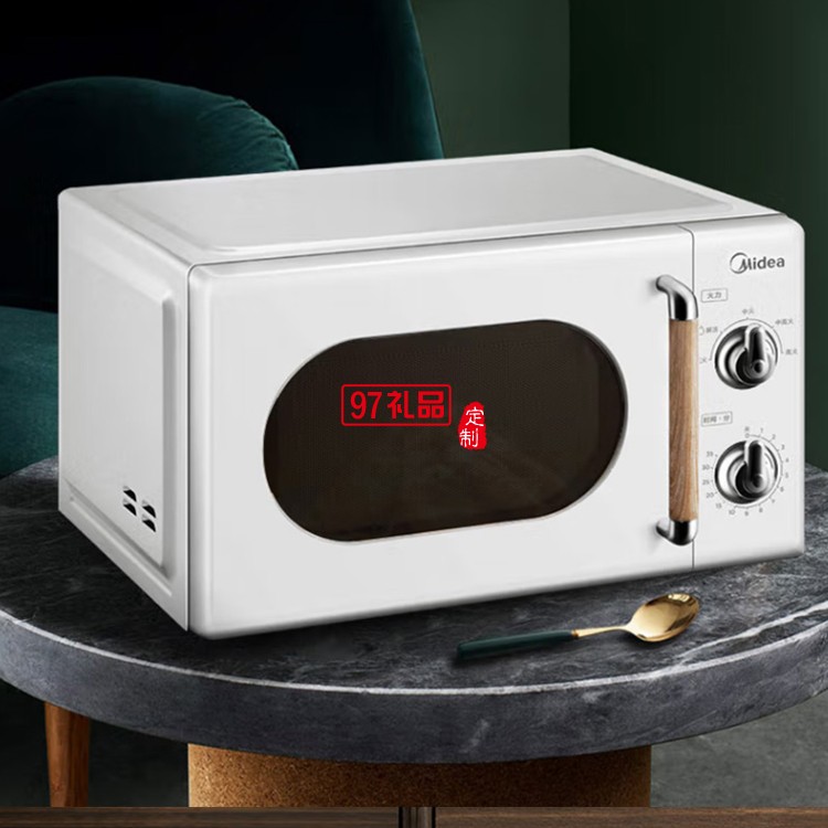 美的復(fù)古旋鈕微波爐360°轉(zhuǎn)盤式加熱20升PM2004定制公司廣告禮品