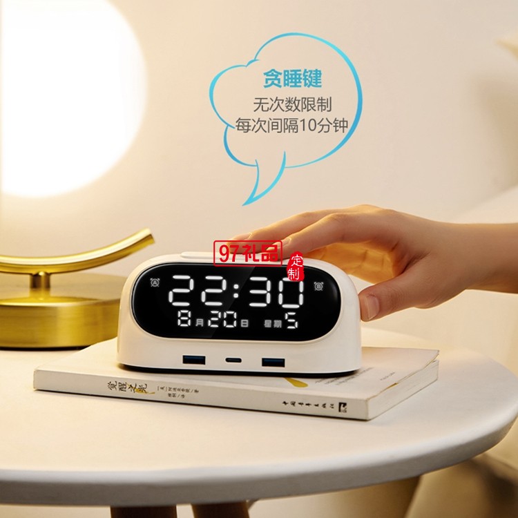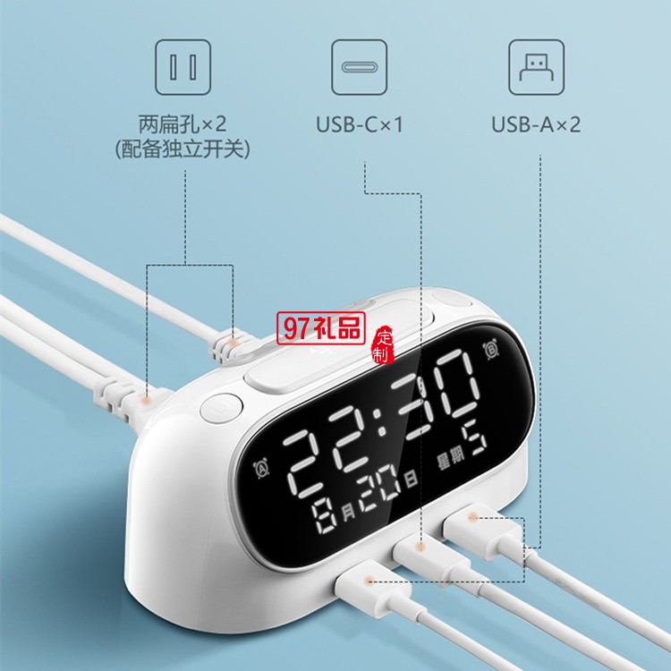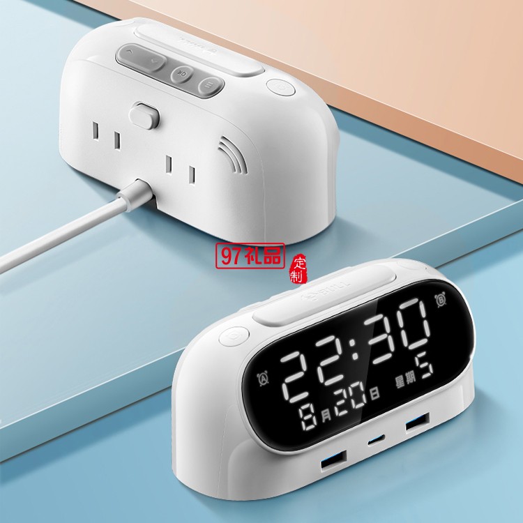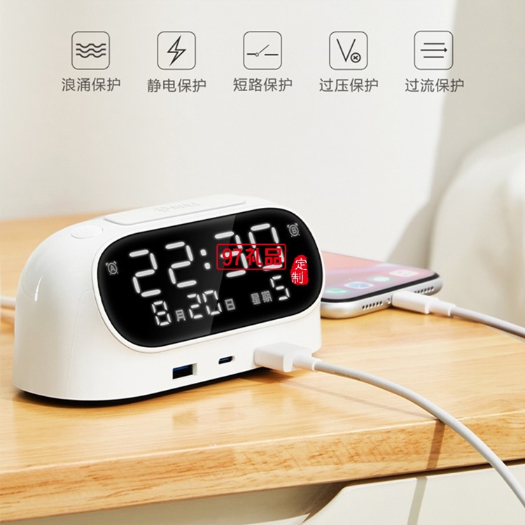 公牛鬧鐘插座快充20W床頭充電USB接線板書桌插排定制公司廣告禮品