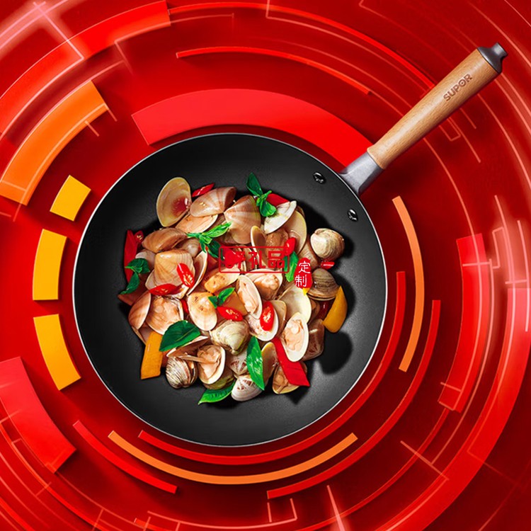 蘇泊爾真不銹炒鍋34cm炒菜鍋鐵鍋CC34AC3定制公司廣告禮品