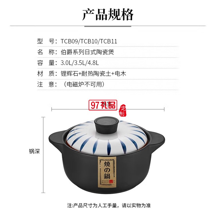 歐美達(dá)砂鍋煲湯燉鍋燃?xì)庠钌冲仠?3L TCB09定制公司廣告禮品