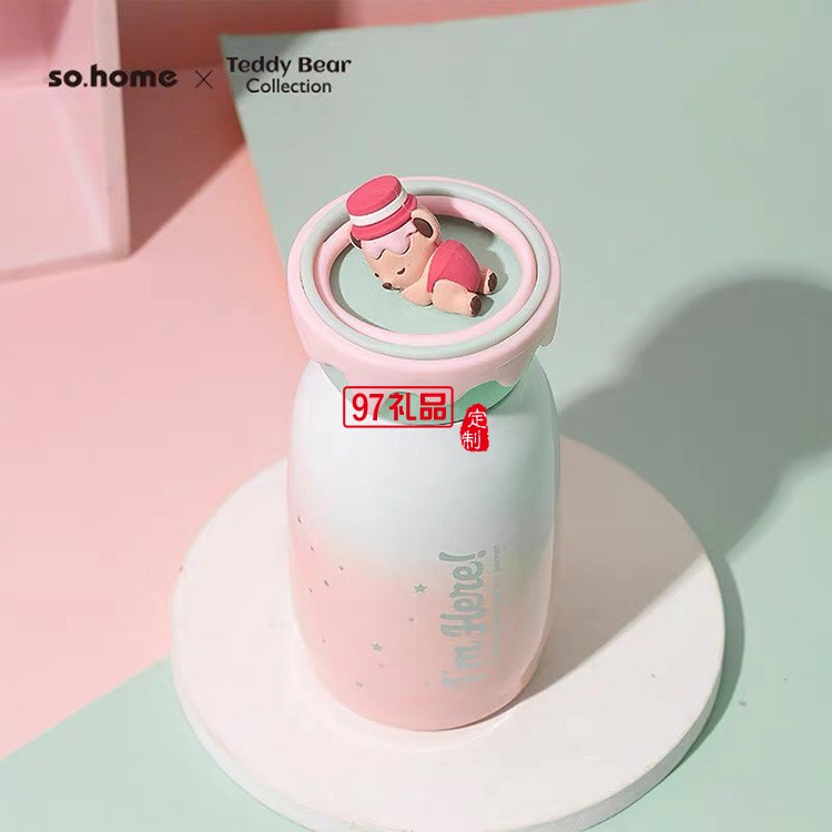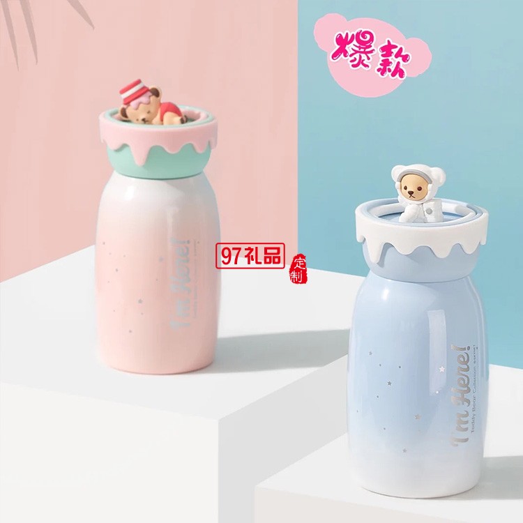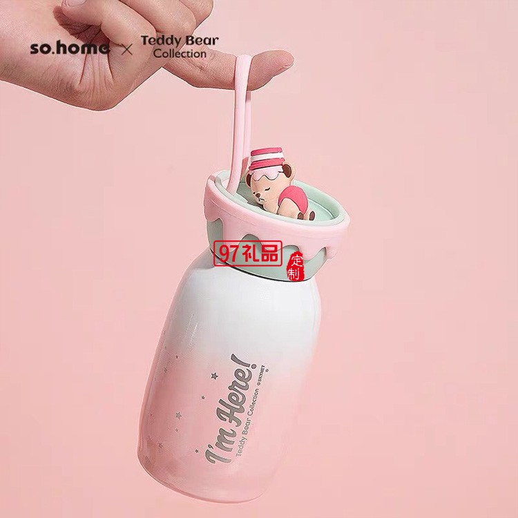 卡通可愛泰迪珍藏水杯不銹鋼咖啡杯隔熱保溫杯禮品杯子定制