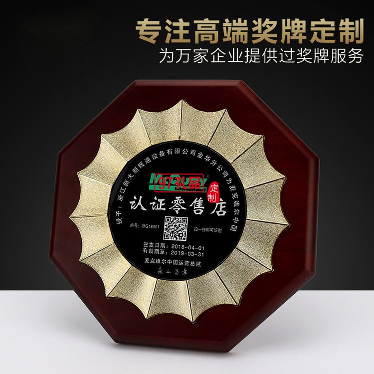 橡膠色實(shí)木獎(jiǎng)牌定制定做金屬授權(quán)牌木質(zhì)榮譽(yù)證書(shū)企業(yè)周年禮品