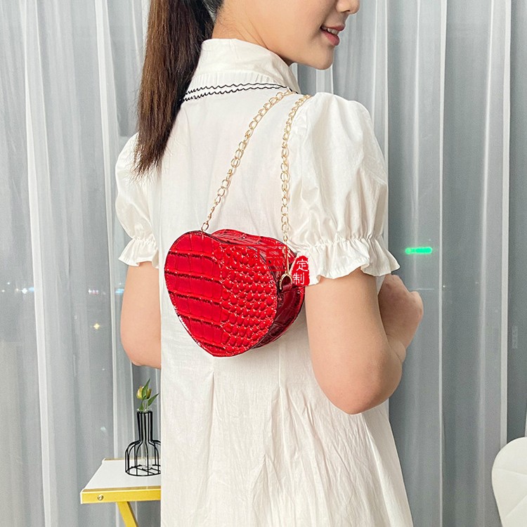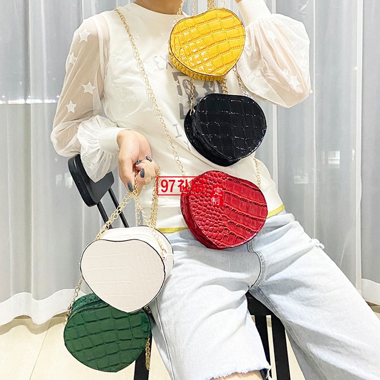 新款鱷魚(yú)紋心形鏈條斜挎口紅包迷你果凍色小包外貿(mào)禮品包