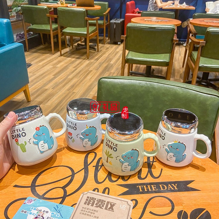 可愛卡通恐龍動物陶瓷杯子密封蓋鏡面?zhèn)€性兒童馬克杯