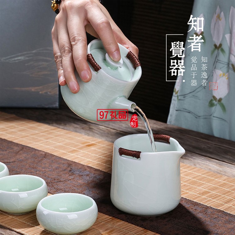 便攜中式陶瓷茶具套裝家用泡茶哥窯功夫旅行茶具8件套禮品禮盒裝
