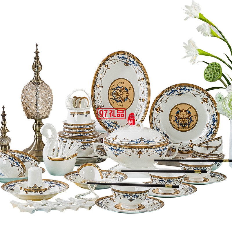 骨瓷餐具套裝 碗盤批發(fā)餐具陶瓷景德鎮(zhèn)陶瓷餐具促銷禮品