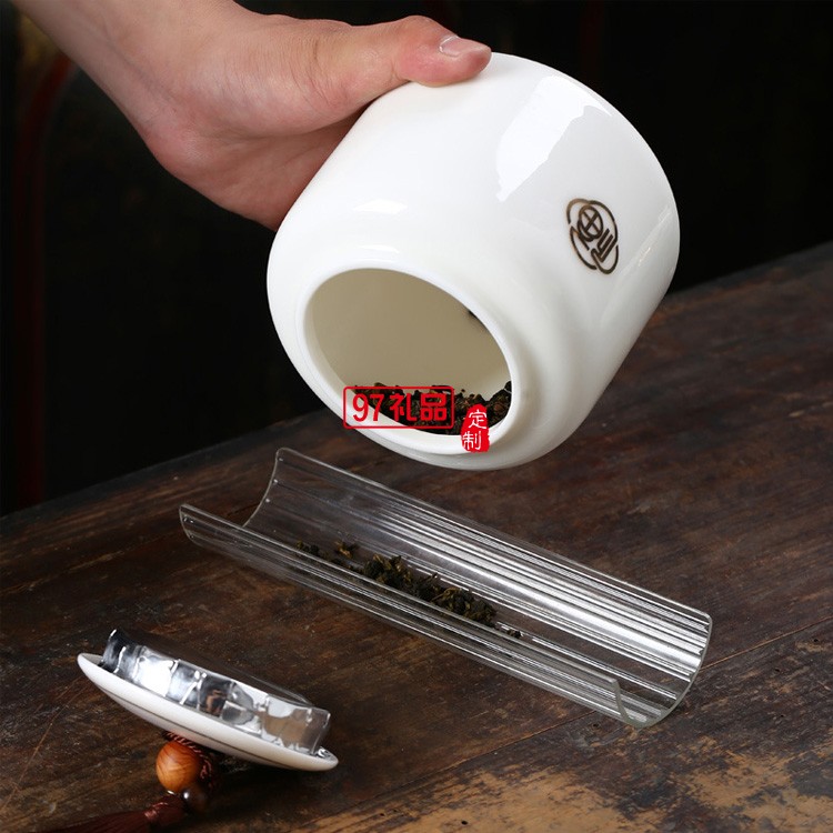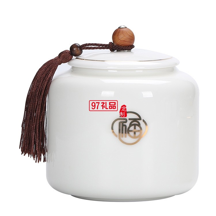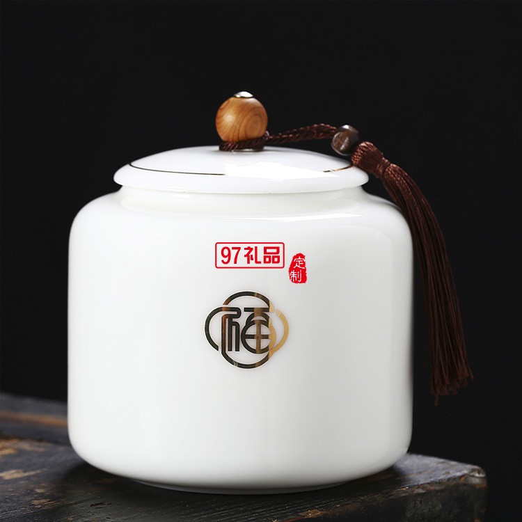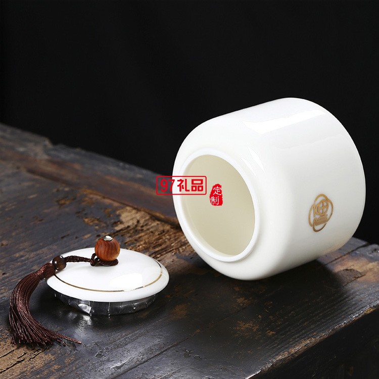 大號羊脂玉描金存茶罐 創(chuàng)意中國白白瓷茶葉罐 密封罐 儲物罐